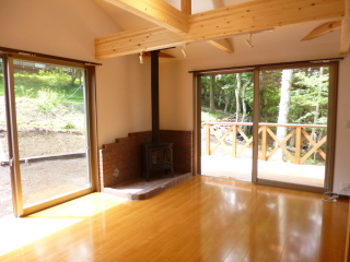 【完成】 薪ストーブと大きな化粧梁が特徴。これから来る冬に向けて薪ストーブが活躍してくれるでしょう。 |