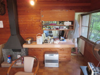 【工事前】 リビングにはカウンターがあり、その横には『暖炉』があります。この暖炉を解体して『薪ストーブ』を入れます。 |